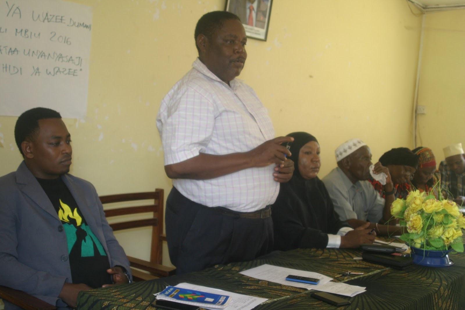 | Katibu Tawala wa wilaya ya Muheza (DAS) akizungumza neno kwenye kwenye mkutano huo |