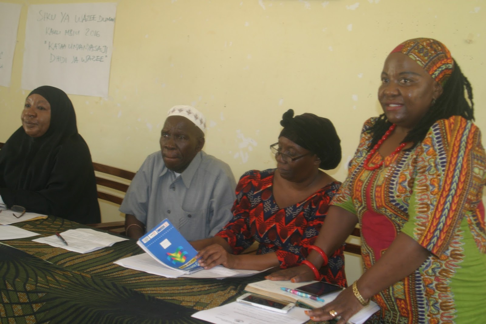 Mkuu wa wilaya ya Muheza, Hajat, Mhandisi Mwanasha Tumbo akizungumza katika mdahalo wa siku ya wazee kiwilaya iliyofanyika kwenye ukumbi wa Halmashauri kulia ni Mwenyekiti wa Chama cha Wazee Muheza.