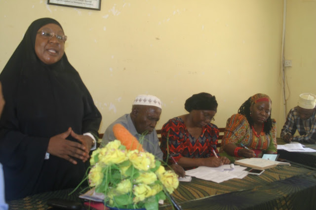 Mwenyekiti wa Chama cha Wazee wilayani Muheza (UWAWAMU) Seif Athumani akizungumza kushoto ni Mkuu wa wilaya ya Muheza,Hajati,Mhandisi Mwanasha Tumbo akifuatilia kulia ni Kaimu Mkurugenzi wa Halmashauri ya Muheza.