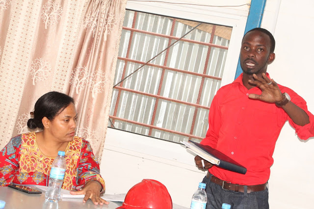 Wafanyakazi wa WHC, wakijadiliana jambo kwenye ziara hiyo.