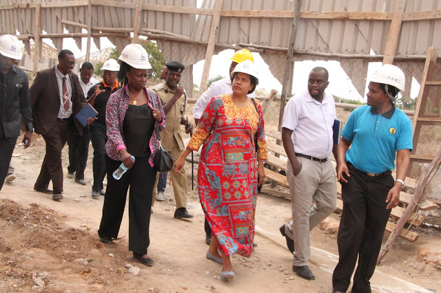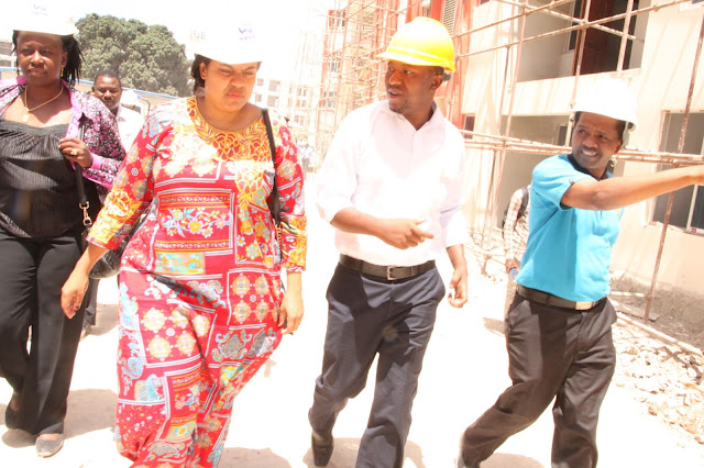 Waziri wa Nchi, Ofisi ya Rais, Utumishi na Utawala Bora, Angella Kairuki (katikati), akikagua nyumba zinazojengwa na Taasisi ya Ujenzi wa Nyumba za Watumishi wa Umma (WHC) katika mradi ya Gezaulole Kigamboni Dar es Salaam leo asubuhi. Kulia ni Mkurugenzi Mtendaji wa WHC, Fredy Msemwa na kulia kwake ni Mjumbe wa Bodi ya WHC, Agnes Meena.