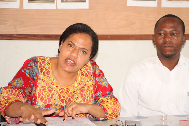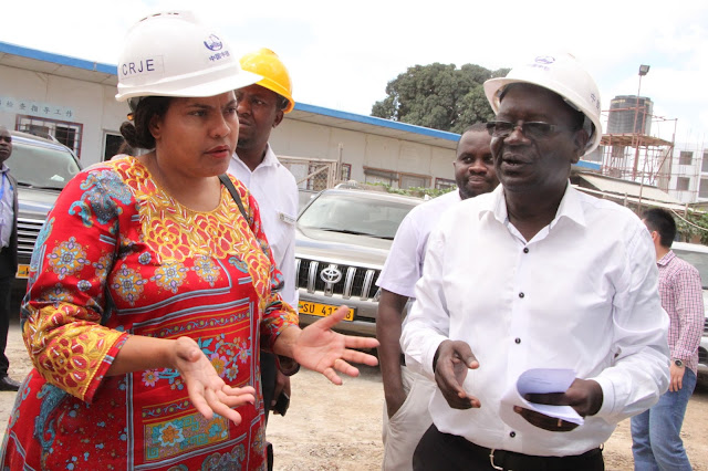Waziri wa Nchi, Ofisi ya Rais, Utumishi na Utawala Bora, Angella Kairuki (kushoto), akizungumza na watendaji wa mradi huo. Kulia ni Mkuu wa Wilaya ya Kigamboni, Hashim Mgandilwa.