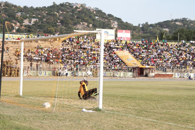 Golikipa wa timu ya Black Leopards, Posnett Omony akisota kuokoa mpira uliotinga wavuni kutoka kwa mchezaji wa timu ya Yanga, Jerry Tegete kwa njia ya penati mnamo dakika ya 54. Timu ya Yanga imeibuka kifua mbele mpaka dakika 90kwa kuinyuka goli 2-1 timu ya Black Leopards kwenye mchezo wao wa marudiano wa kirafiki uliofanyika kwenye uwanja wa CCM-Kirumba jijini Mwanza.