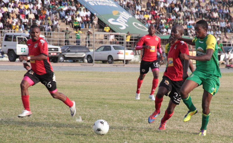 Mchezaji wa wa timu ya Yanga David Luhende akitaka kumchomoka mchezaji wa timu ya Black Leopards, Moses Kwena, kwenye mchezo wao wa marudio uliofanyika kwenye uwanja wa CCM Kirumba jijini Mwanza.