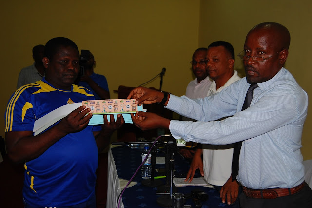 Kiongozi wa Timu ya JKU akitowa shukrani kwa Timu za JKU na Mafunzo kwa ufadhili wa Hoteli ya Zanzibar Ocean View kudhamini Michuano hiyo kwa kununua tiketi zote za michuano hiyo na kutowa fursa kwa wananchi kuona mchezo huo bila ya kulipa kiingilio wakati wa michuano hiyo inayotarajiwa kufanyika wiki ijayo kuazia tarehe 13-2-2016 na 14-2-2016 yatakayofanyika katika uwanja wa Amaan Zanzibar na kuwataka Wafanyabiashara wengine kujitokeza kudhamini michuano mbalimbali Zanzibar ili kukuza kiwango cha Mpira Zanzibar.