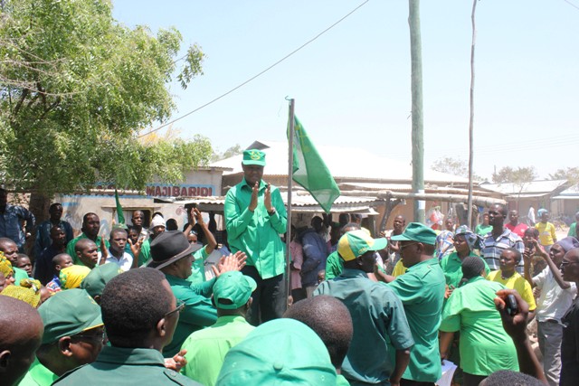 Katibu Mkuu Ndugu Abdulrahman Kinana  akiwahutbia wakati wa Mwanhuzi wilaya ya Meatu mkoani Simiyu, ambapo Katibu Mkuu alipata nafasi ya kugusia suala la Katiba, matatizo ya maji na umeme ambayo vyote ameyapatia ufumbuzi.