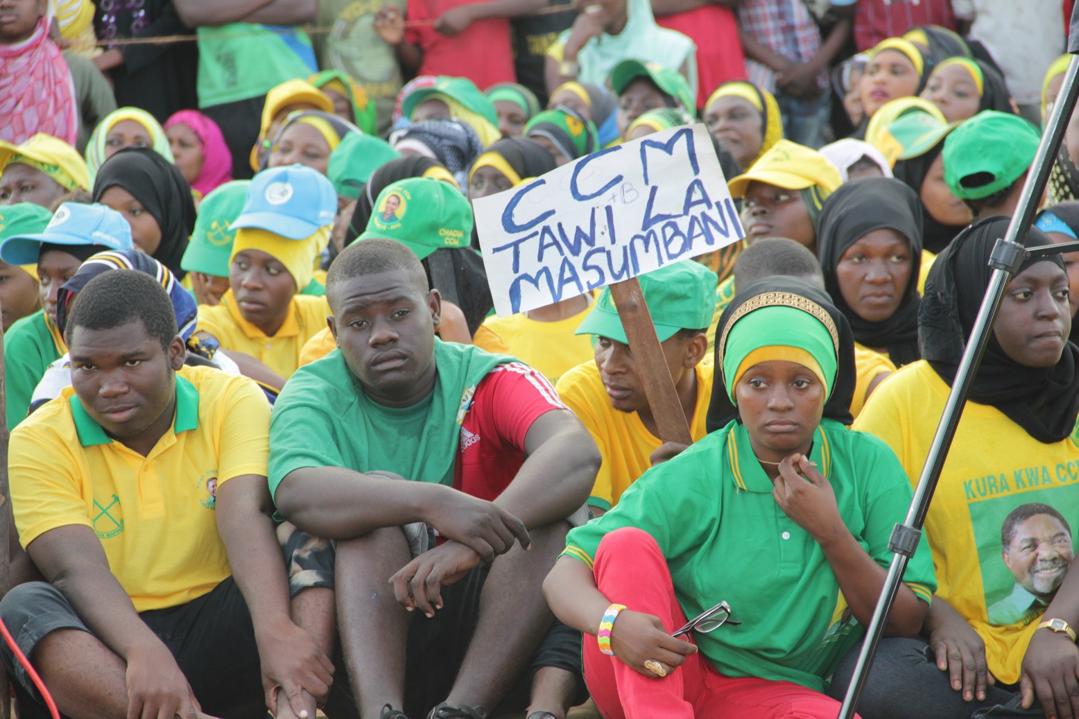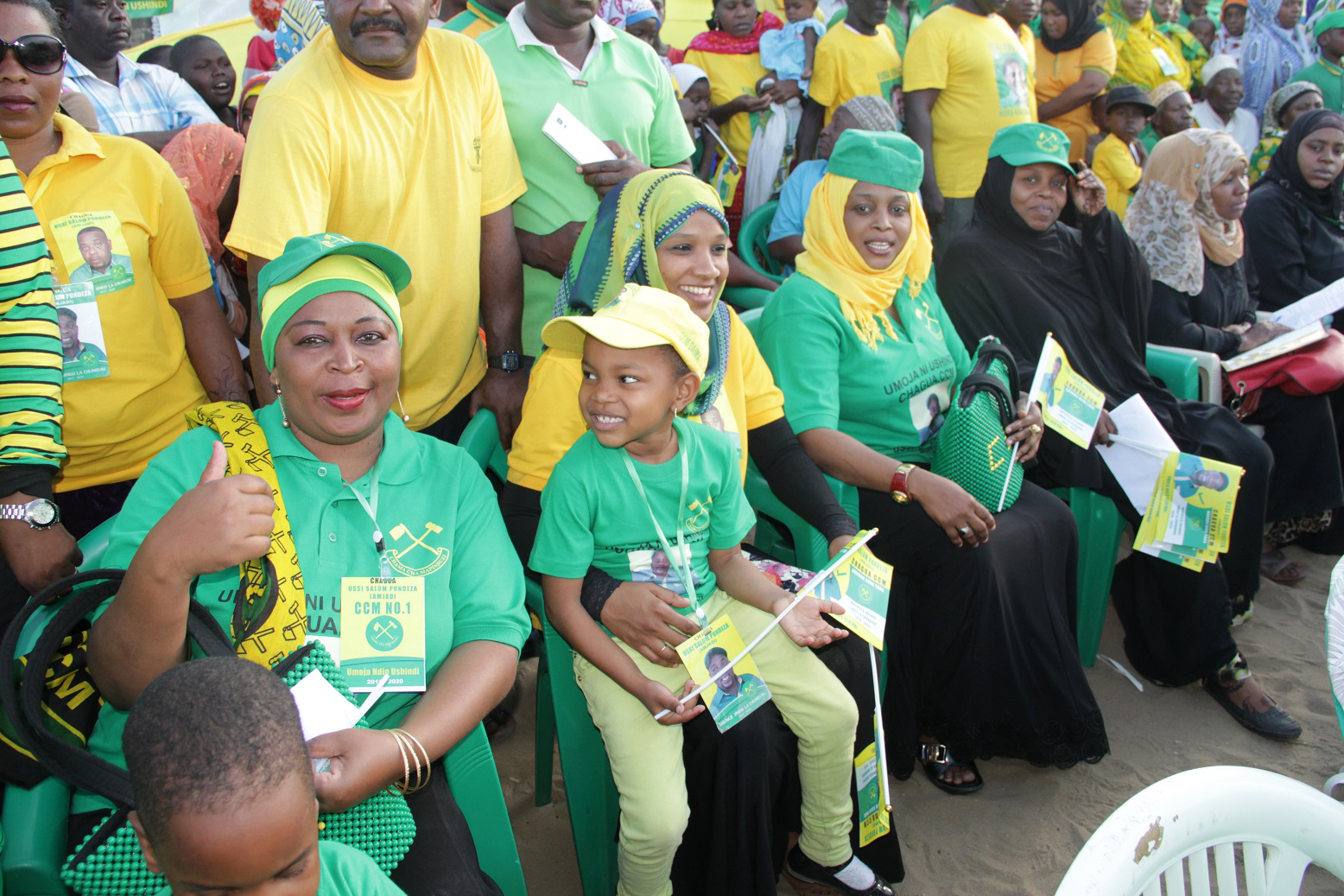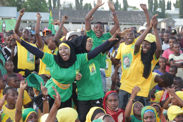 Wanachama wa CCM wakishangilia wakati wa mkutano wa kampeni wa Jimbo la Chumbuni Unguja