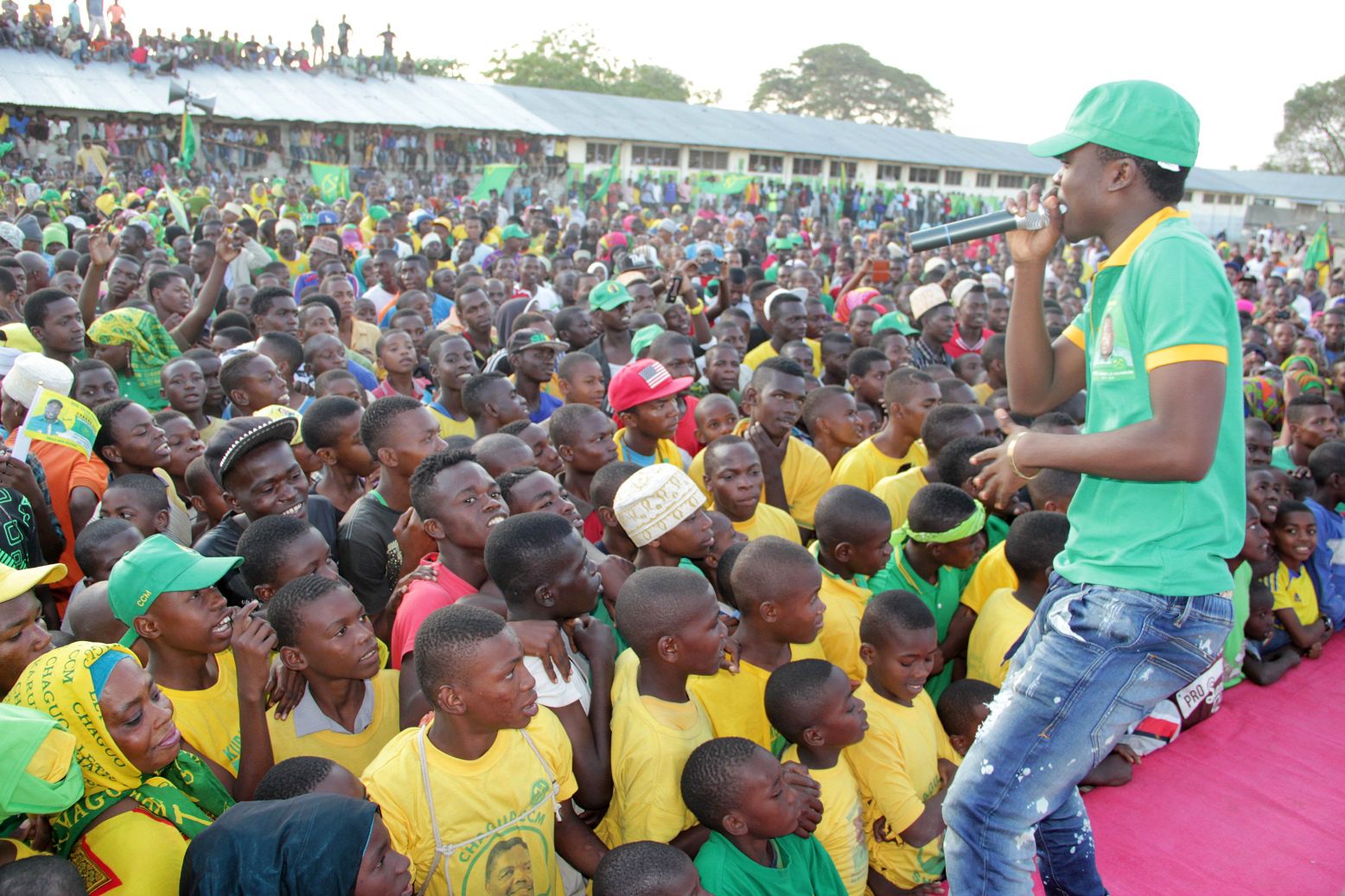 Msanii wa Bendi ya Yamoto, akitowa burudani kwa Wanachama wa CCM wa Jimbo la Chumbuni wakati wa Mkutano wa Kampeni wa Jimbo hilo.