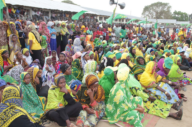 Wananchi wa Jimbo la Chumbuni wakifuatilia Mkutano wa Kampeni wa Jimbo hilo uliofanyika viwanja vya mabanda ya ngombe chumbuni.