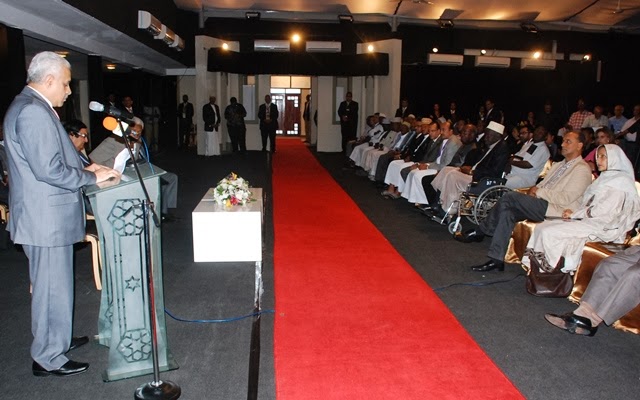 Makamu wa Rais wa Taasisi ya Aga Khan Tanzania, Kanal Khimj akitoa manano ya utangulizi kabla ya kumkaribisha Mzee Mwinyi kuzungumza