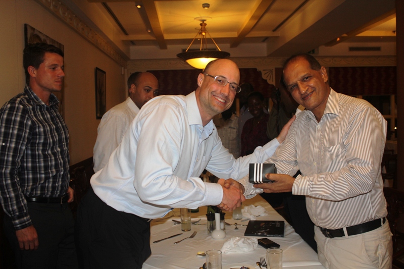 Ugeni huo ukipata chakula cha jioni katika hoteli ya Serena jana usiku kutoka kulia ni Kevin Griffin mchezaji wa mpira wa American Footballn Kasey Keller mchezaji maarufu wa mpira wa miguu vilabu mbalimbali Ulaya na Marekani na mchezaji wa timu ya Taifa ya MarekaniKristen Addings kutoka Taasisi ya Washington Global Hearthna David Glass Mtaalam Video na Majarida
