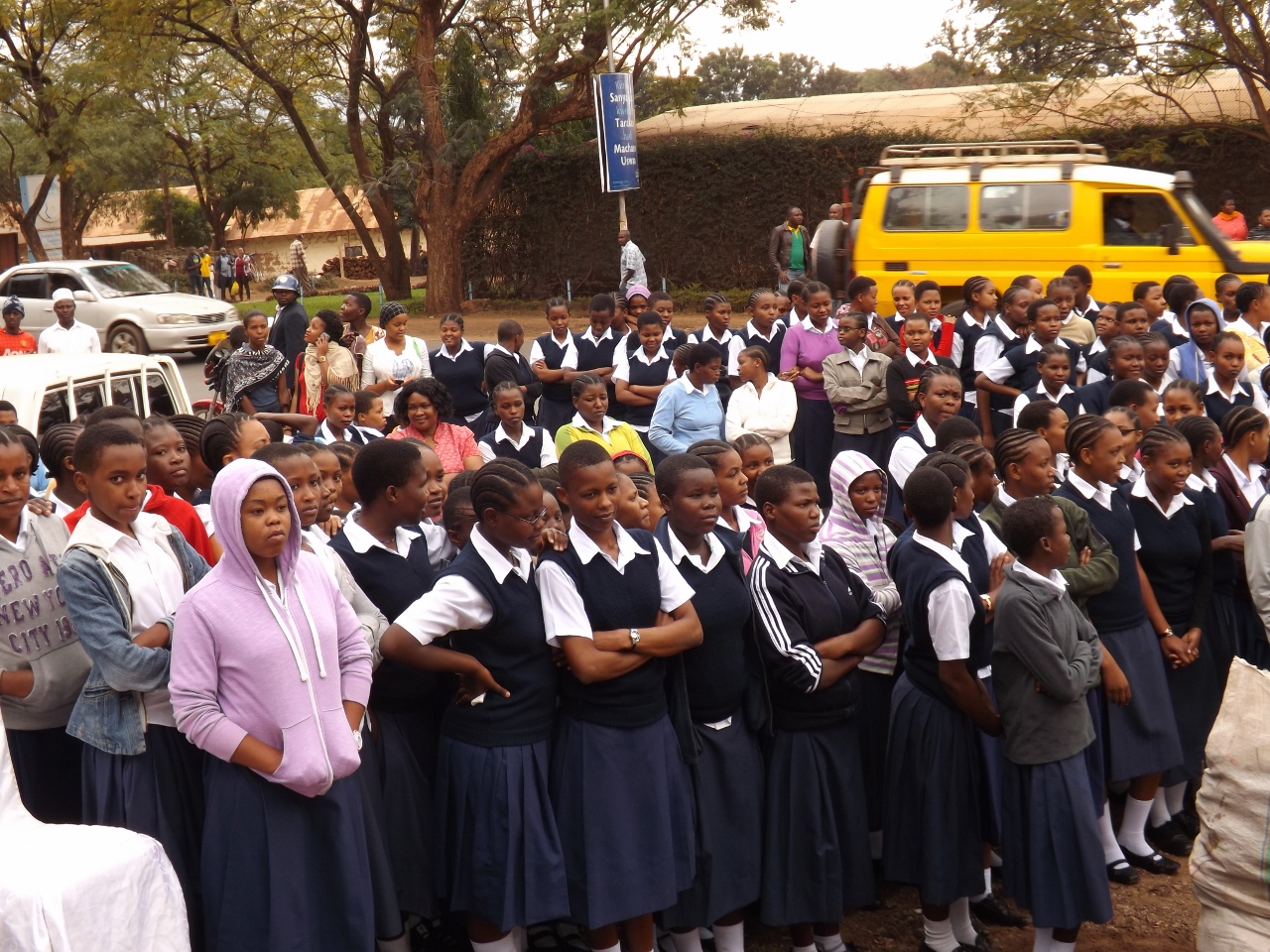 Baadhi ya wanafunzi wa kituo cha Mafunzo Community Center wakifuatilia uzinduzi wa tawi la Benki ya Mkombozi.