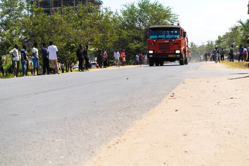 Moja ya Gari la zima moto likiwa linawahi eneo la Tukio kusaidia kuzima moto.
