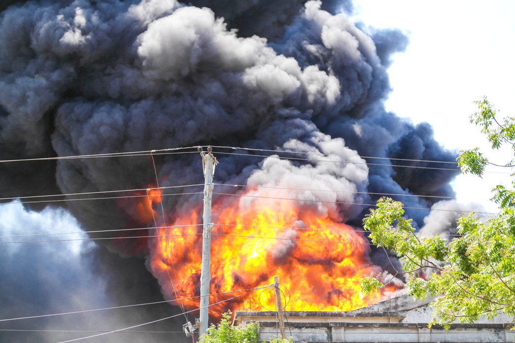 Ulinzi ukiwa umeimarishwa kabisa katika eneo ambalo moto ulikuwa unawaka.