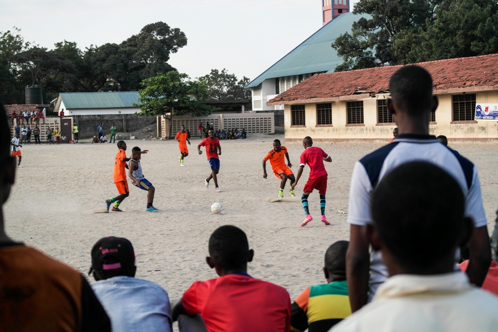 Mpira ukiendelea huku watu mbalimbali wakifuatilia Burudani hiyo kwa makini