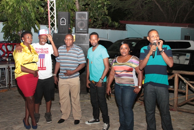 Mtangazaji wa kipindi cha power breakfast, Gerald Hando akizungumza jambo mbele ya Wafanyakazi wenzake usiku huu kabla ya kufungua shampeni, wa pili kulia ni Barbra Hassan, B Dozen, Eprahim Kibonde, Millard Ayo pamoja na Dina Marious.