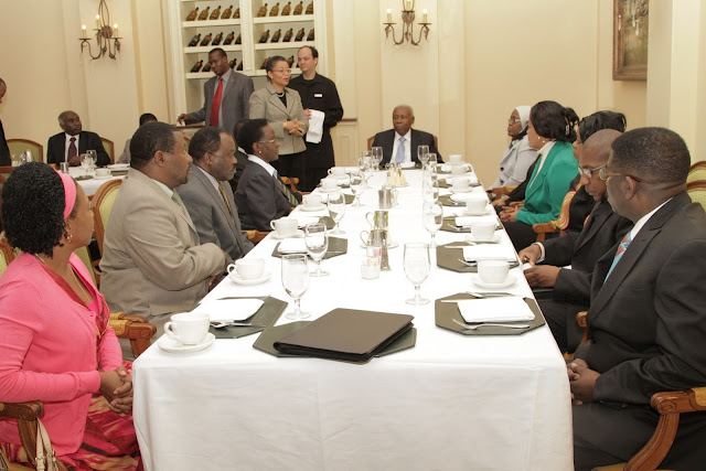 Makamu wa Rais wa Jamhuri ya Muungano wa Tanzania, Dk. Mohammed Gharib Bilal, akiagana na baadhi ya viongozi wa Jumuiya ya Watanzania waishio Washngton Dc, baada ya mazungumzo yao yaliyofanyika Feb 6, 2013, katika Hoteli ya Omni Shoreham.