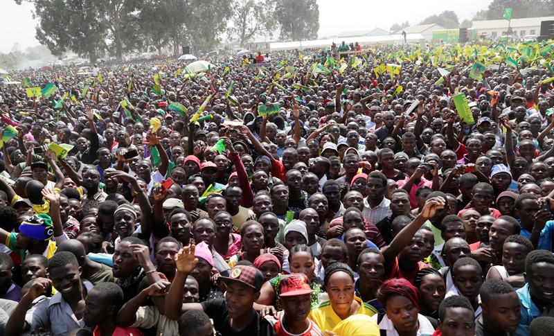 Wananchi wakishangilia jambo kwenye mkutano wa kampeni