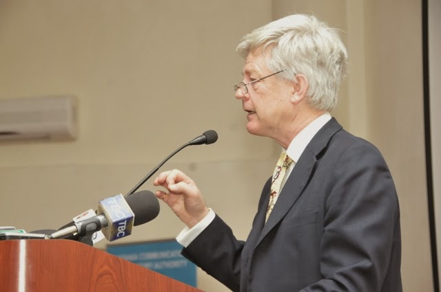 Mtendaji wa Shirika la Mawasiliano kwa nchi za Jumuia ya Madola (CTO), Tim Unwin akifuatiwa na Mkurugenzi Mkuu wa Mamlaka ya Mawasiliano Tanzania (TCRA), Prof. John Nkomwa.