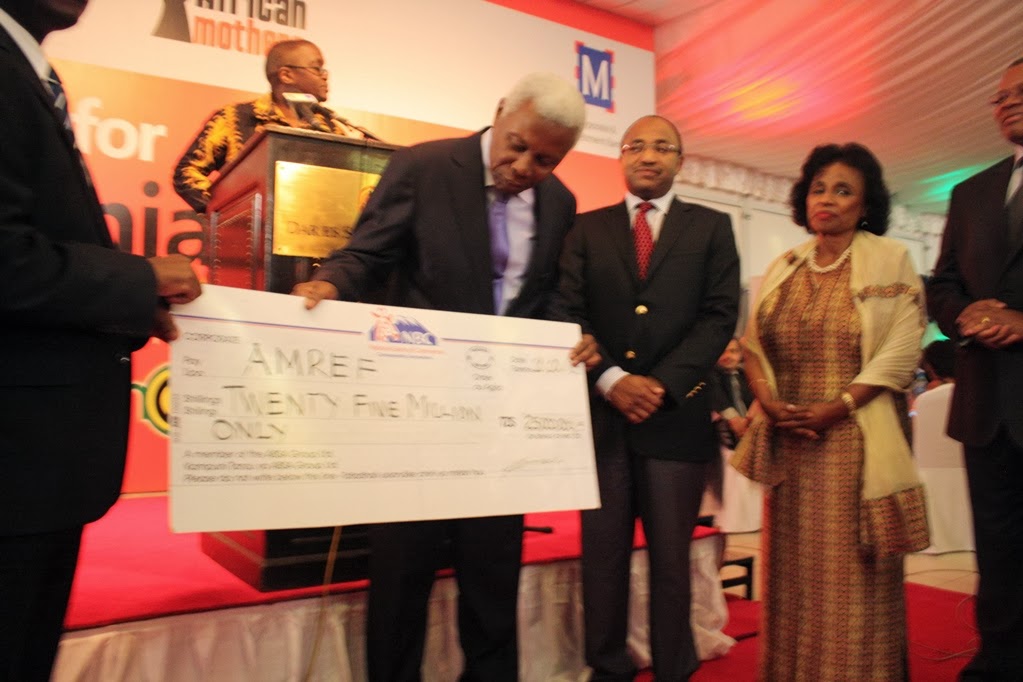Makamu wa Raisi Mh Dk Mohamed Gharib Bilal ambae pia alikua Mgeni rasmi katika Hafla ya Usiku wa Chakula cha Hisani ulioandaliwa na AMREF Tanzania kwa kushirikiana na Montage Limited na Benki M akipokea mfano wa Hundi yenye Thamani ya Shilingi Milioni 25 za Kitanzania kutoka Kwa Mwakilishi wa Benki ya NBC kwaajili ya MChango wao katika Kampeni ya Stand up For Tanzania Mother ambayo inalengo la kukusanya pesa kwaajili ya Kusomesha wakunga ili kusaidia kupunguza Vifo vya Mama na Mtoto