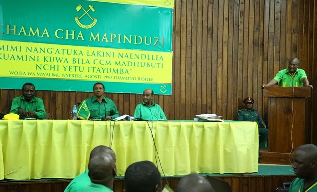 Katibu wa NEC, Itikadi na uenezi Nape Nnauye akihamasisha baada ya Mwenyekiti wa CCM, Rais Jakaya Kikwete kifunga mafunzo hayo.