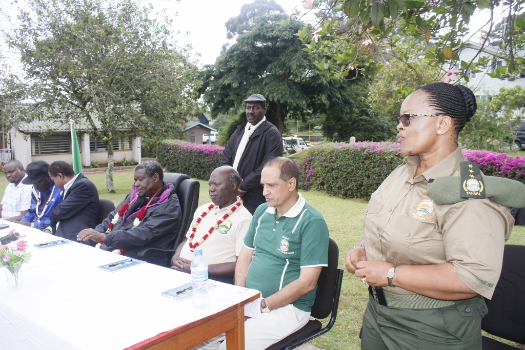 Mhifadhi Mkuu wa Hifadhi ya Taifa ya Mlima Kilimanjaro, Betrita Loibook akizungumza mara baada ya kuwakaribisha Washiriki wa zoezi la upandaji Mlima Kilimanjaro kufika katika lango la Marangu zilipo ofisi za KINAPA.