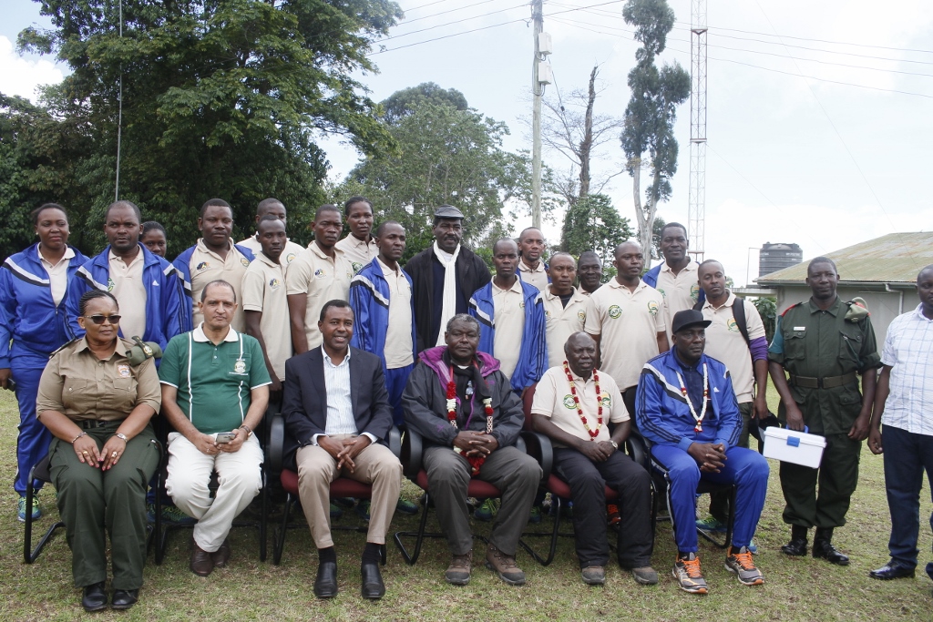 Mkuu wa Majeshi ya Ulinzi Mstaafu ,Jenerali George Waitara na viongozi wengine wakiwa katika picha ya pamoja na askari wa jeshi la ulinzi waliofanikiwa kupanda mlima Kilimanjaro.