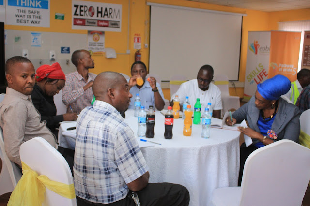Naibu Waziri ofisi ya Makamu wa Raisi Mazingira Mheshimiwa Luhaga Mpina , Mkurugenzi Mtendaji wa Kampuni ya Bia ya Serengeti Helene Weesie na waandishi wa habari wakifuatilia kwa makini jinsi mtambo wa kusafirisha majitaka unavyofanya kazi kutoka kwa mmoja wa wasimamizi wa mradi huo.