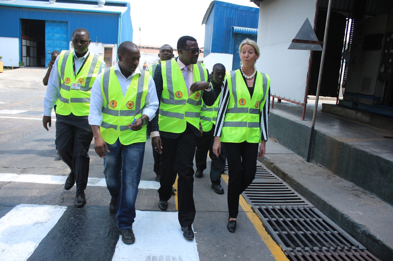 Naibu Waziri ofisi ya Makamu wa Raisi Mazingira Mheshimiwa Luhaga Mpina (katikati) akiongozana na Mkurugenzi Mtendaji wa Kampuni ya Bia ya Serengeti Helene Weesie  wakiongozana kuelekea kwenye  bomba la kudhibiti wa majitaka  ambalo linalenga  kuhakikisha kiwango cha juu kiafya kwa kampuni, mazingira  na wakazi wa maeneo yaliyo karibu.