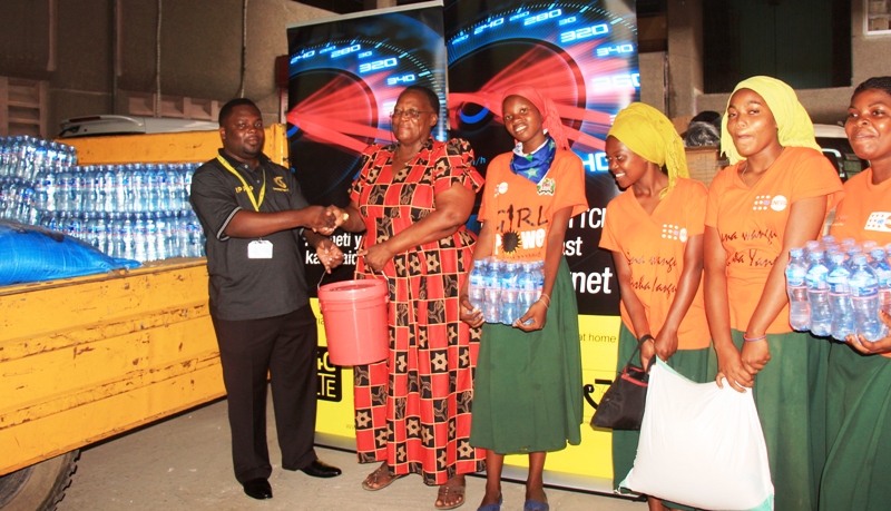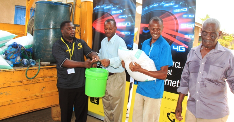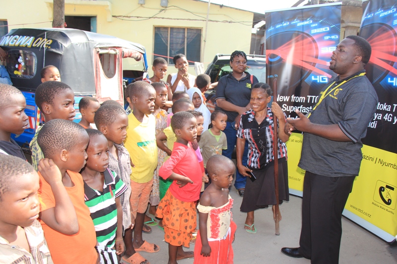 | Meneja Uhusiano wa Kampuni ya Simu Tanzania (TTCL), Nicodemus Thomas (kulia) akimkabidhi sehemu ya msaada Mlezi wa Kituo cha Kulelea Watoto Wanaoishi katika Mazingira Magumu cha Honoratha cha Temeke jijini Dar es Salaam leo kwa ajili ya Siku Kuu ya Mwaka Mpya 2016. TTCL imetoa msaada wa mifuko ya Unga, Sukari, Mchele, Maharage na Mafuta ya Kupikia kwa vituo vitatu tofauti vya watoto wanaoishi katika mazingira magumu. |