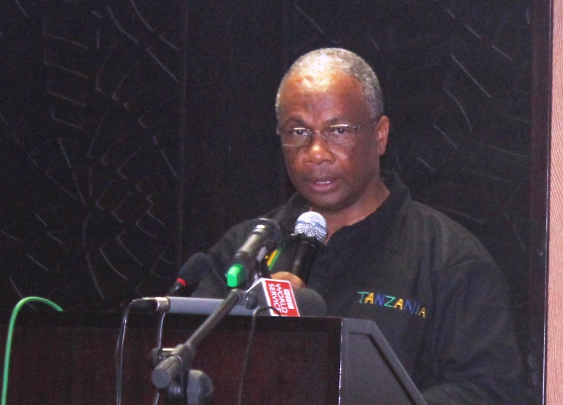 Balozi Khamis Kagasheki ambaye pia ni Waziri wa Maliasili na Utalii akizungumza katika hafla hiyo iliyofanyika jana kwenye hoteli ya Mount Meru jijini Arusha.