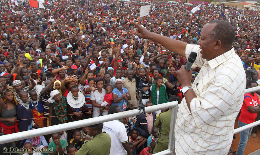 Mgombea Urais wa Chama cha Demokrasia na Maendeleo (CHADEMA) kupitia mwamvuli wa UKAWA, Edward Lowassa, akiwahutubia wananchi wa Mji wa Namanga, Jimbo la Longido, wakati wa Mkutano wa Kampeni za Mgombea Urais wa Chama cha Demokrasia na Maendeleo (CHADEMA) kupitia mwamvuli wa UKAWA, Edward Lowassa, uliofanyika kwenye Uwanja wa Namanga, Jijini Arusha Oktoba 7, 2015.