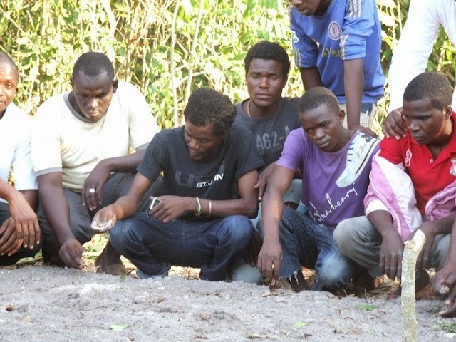Msanii 20 Percent na ndugu zake wakiweka udongo kwenye kaburi la marehemu baba yake mzazi mzee Kinzasa.