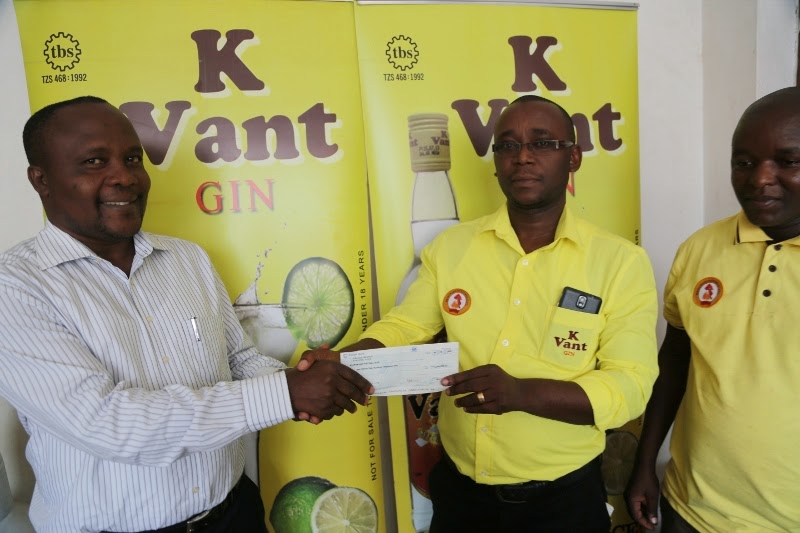 Meneja Mauzo wa Kampuni ya Megatrade Investment Ltd ya jijini A rusha, kanda ya Kaskazini, Edmund Rutaraka akikabidhi hundi ya kiasi cha sh Mil, 1.5 kwa Mwenyekiti wa chama cha soka mkoa wa Kilimanjaro(KRFA) Gudluck Mushi kwa ajili ya kuisadia timu ya Kilimanjaro fc inayoshiriki ligi ya mabingwa wa mikoaikiwa kituo cha Lindi.