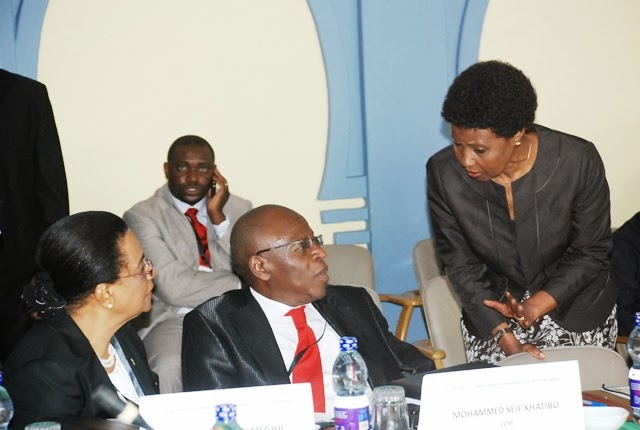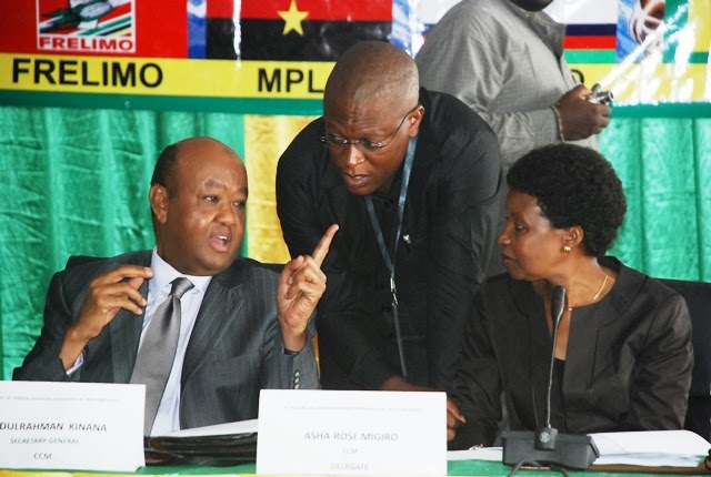 Katibu Mkuu wa CCM, Abdulrahman Kinana akifungua mkutano wa sita wa Makatibu wakuu wa vyama vilivyokuwa vya ukombozi kusini mwa Afrika, leo kwenye hoteli ya Kunduchi Beach, Dar es Salaam. Kushoto ni Katibu wa NEC, Siasa na Uhusiano wa Kimataifa CCM, Dk. Asha-Rose Migiro na Naibu Katibu Mkuu wa CCM, Zanzibar, Vuai Ali Vuai.