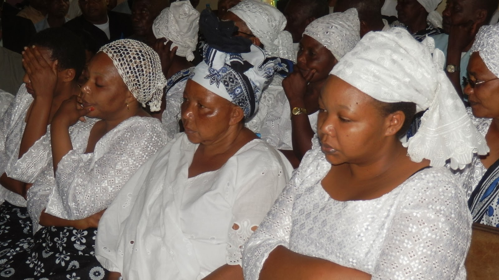 Mke wa Marehemu, Maria Kombe (katikati) pamoja na watoto wake wakifuatilia ibada ya Maziko ya Mume wake, aliyekuwa Mkuu wa kitengo cha Usalama Barabarani, Kamishna Msaidizi wa Polisi, James Kombe, aliyezikwa Jana Nyumbani kwake, kijiji cha Msae, Kata ya Mwika, wilaya ya Moshi Vijijini, mkoani Kilimanjaro.