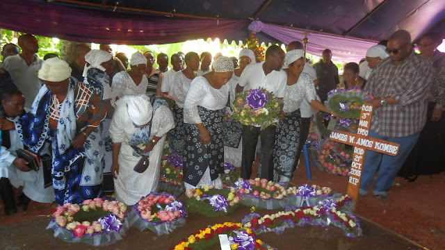 | Watoto wa Marehemu Kombe, wakiongozwa na Kaka yao, Dustan Kombe kuweka ua katika kaburi la baba yao aliyezikwa nyumbani kwake, kijiji cha Msae, Kata ya Mwika, wilaya ya Moshi Vijijini, mkoani Kilimanjaro. |