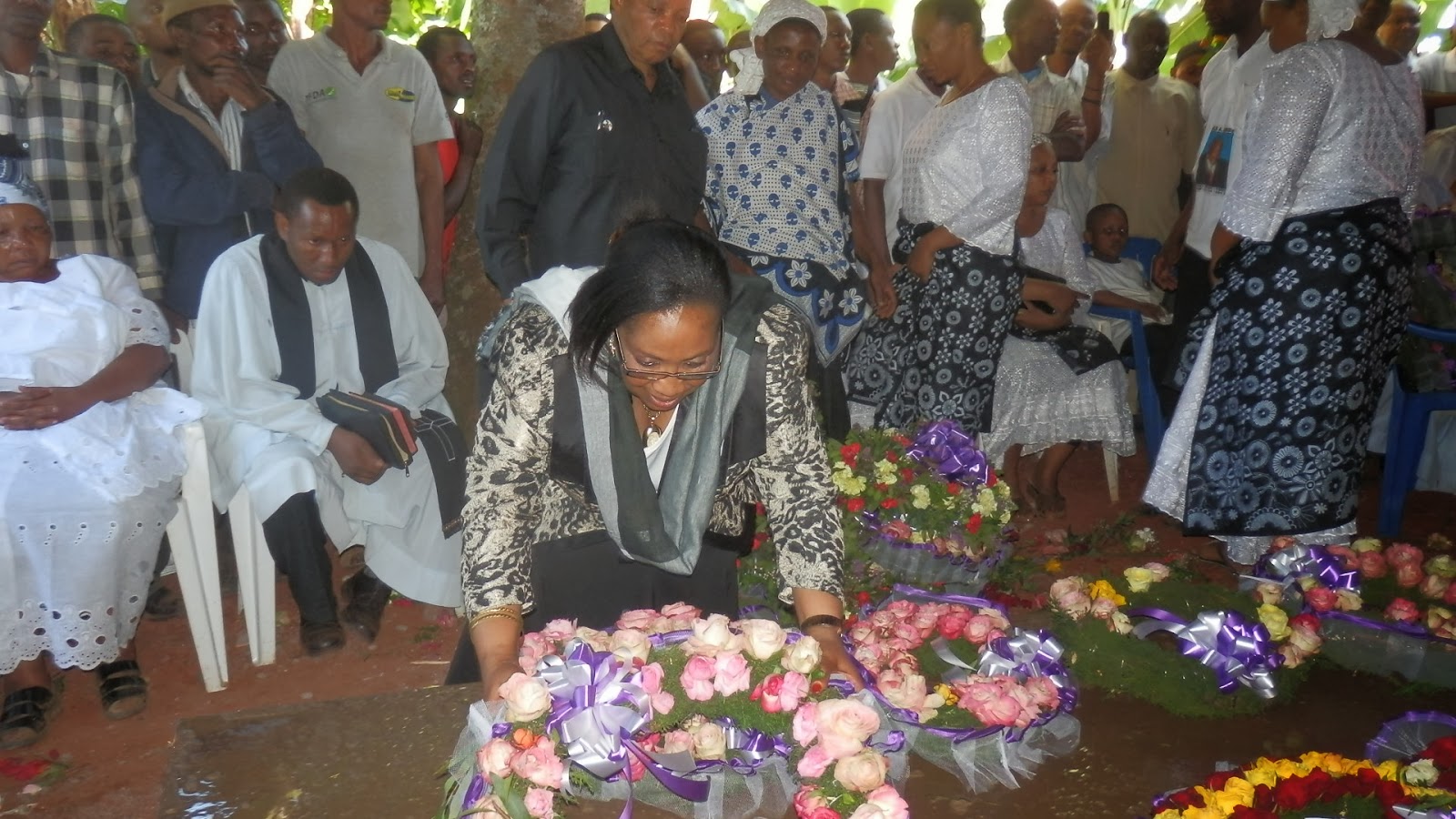 | Jaji wa Mahakama Kuu kanda ya Moshi, Mkoani Kilimanjaro, Aisha Nyerere, akiweka Ua katika Kaburi la aliyekuwa Mkuu wa kitengo cha Usalama Barabarani, Kamishna Msaidizi wa Polisi, James Kombe, aliyezikwa Jana Nyumbani kwake, kijiji cha Msae, Kata ya Mwika, wilaya ya Moshi Vijijini, mkoani Kilimanjaro. |