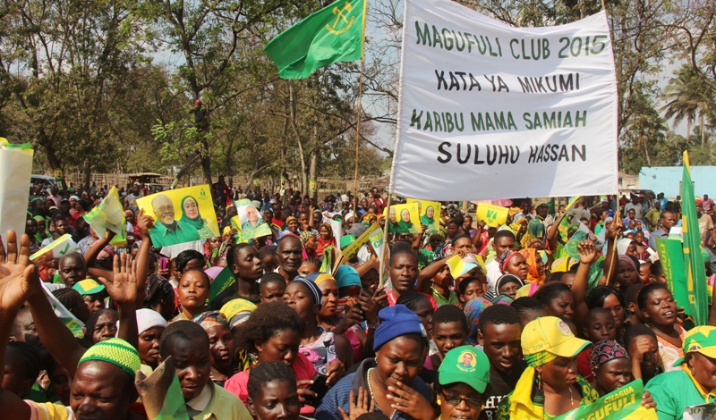 | WanaCCM na wananchi wakiwa kwenye mkutano wa kampeni wa mgombea mwenza wa nafasi ya urais Chama Cha Mapinduzi (CCM), Bi. Samia Suluhu Hassan katika Jimbo la Mikumi Morogoro . |