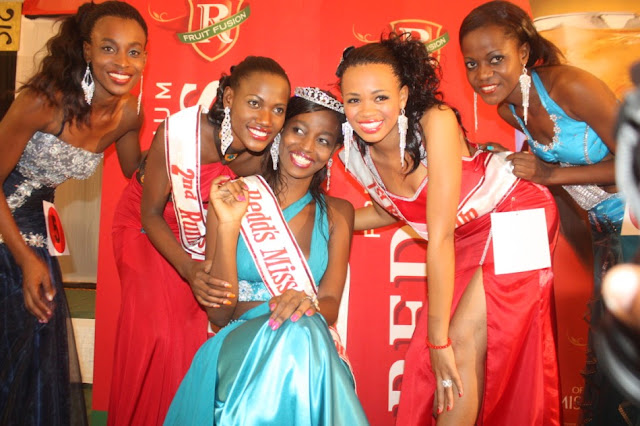 Warembo waliofanikiwa kuingia katika tano bora wakifurahia kwa pamoja, katikati ni Redds Miss Kinondoni 2013 Lucy Tomeka, (shoto kwake) ni Prisca Clement, (kulia kwake) ni Phillios Lemi. Wengone ni Sarah Paul (kwanza kulia) na Linda Joseph (kwanza kushoto).