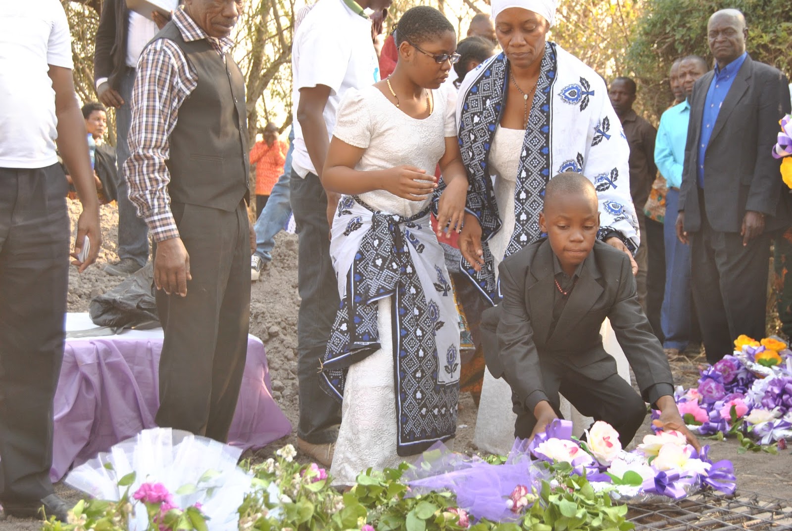 Mke wa marehemu Winfrida Senga akiweka shada la maua katika kaburi la mumewe, marehemu Joseph Senga.