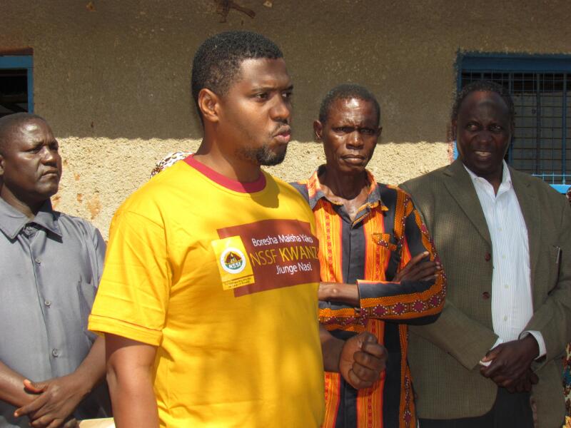 Diwani wa Kata ya Mtendeni Mh. Yahya Mhamali akitoa neno la shukrani NSSF.
