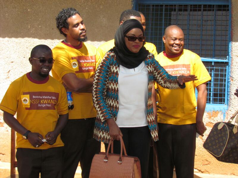 Mkazi wa Mtendeni Bi. Fatma Said Makalla, akitoa shukrani kwa msaada uliotolewa na NSSF.