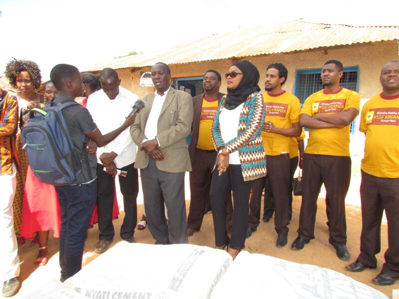 Diwani ya Kata ya Mtendeni Mh. Yahya Mhamali, akitoa shukrani zake kwa uongozi wa NSSF baada ya kupokea mifuko 50 ya saruji kwa ajili ya ujenzi wa Zahanati ya Mtendeni.