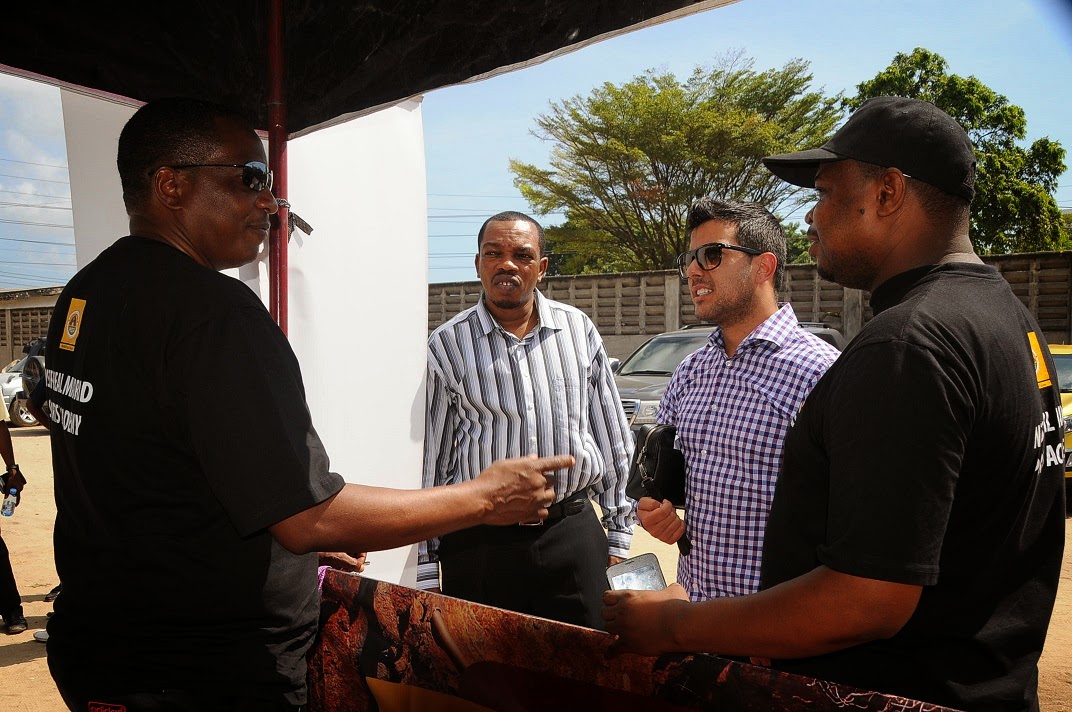 Mwakilishi wa Klabu ya Real Madrid, Rayco Ghasia (wa pili kulia) akimsikiliza kwa makini Mkurugenzi wa Uendeshaji wa NSSF, Crescentius Magori (kushoto) wakati wa uzinduzi wa zoezi la kuandikisha vijana watakaojiunga na kituo kipya cha michezo.