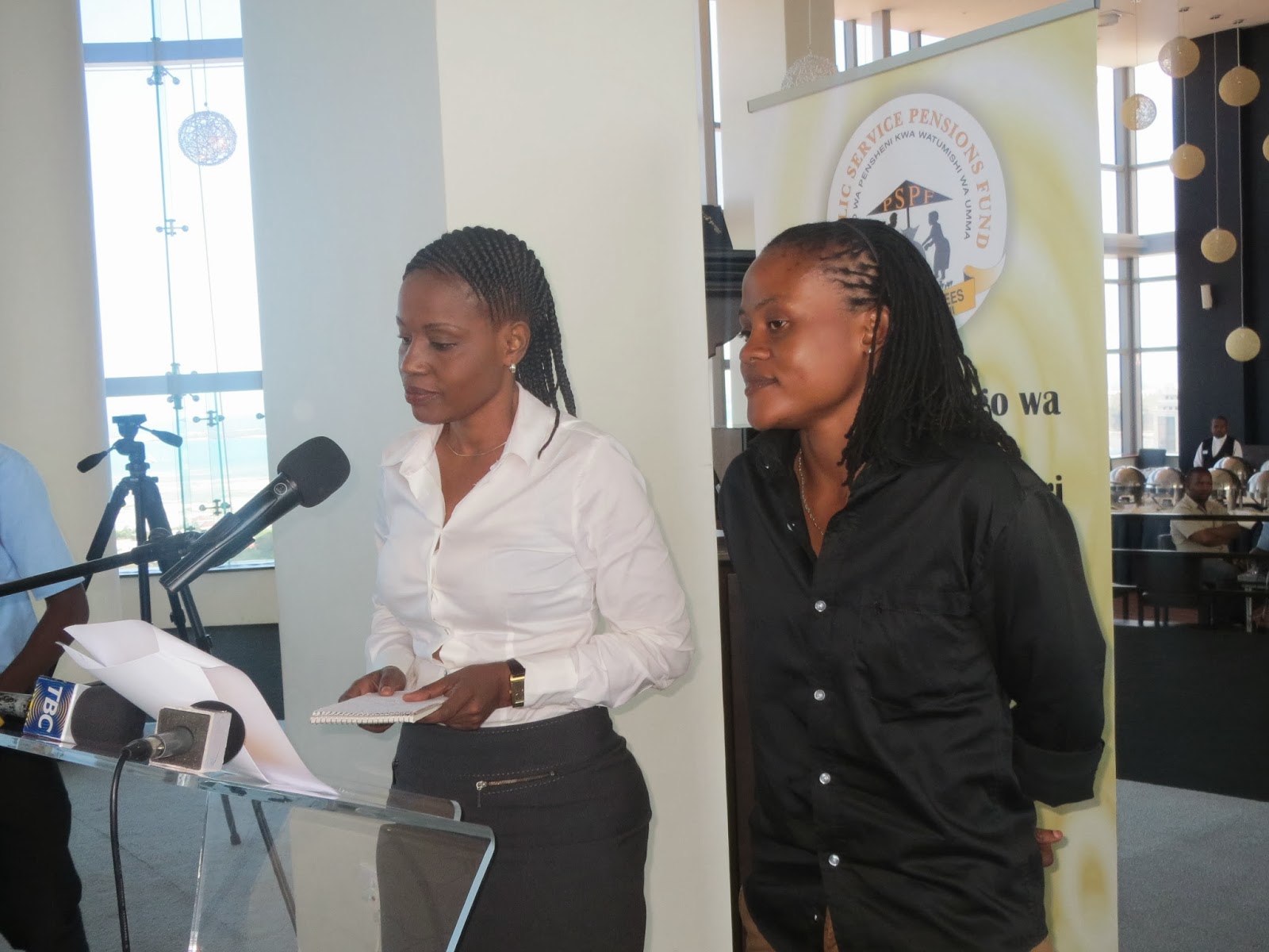 Afisa Mahusioano wa PSPF, Fatma Elhagy akiwa na mtumishi mwenzake.