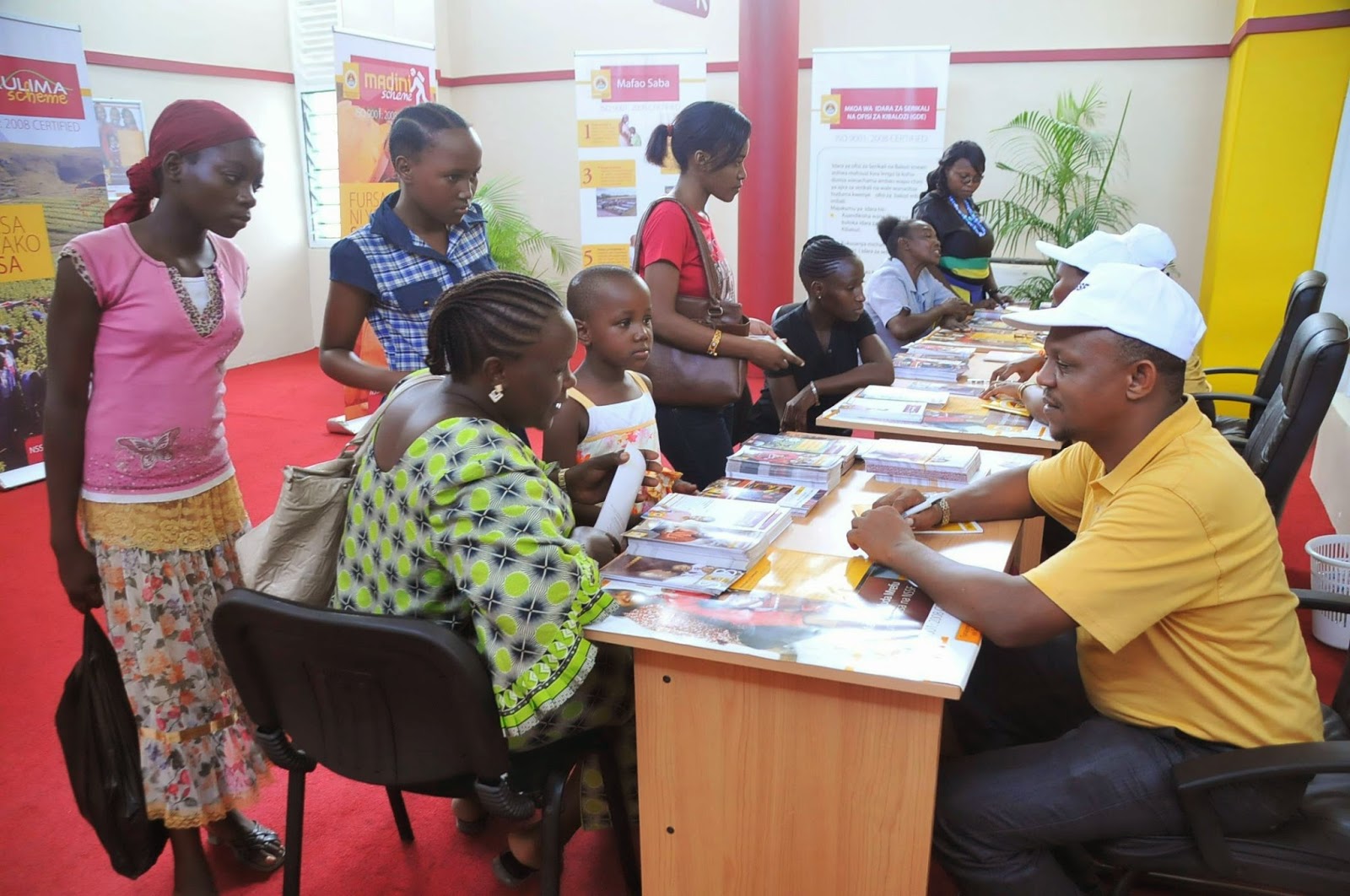Baadhi ya watu waliofika katika banda la NSSF wakipata ufafanuzi kuhusu Madini Scheme, Wakulima Scheme na Hiari Scheme.