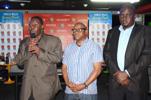 Naibu Mustahiki Meya wa Manispaa ya Kinondoni Mheshimiwa Songolo ambaye alimwakilisha mgeni rasmi meya wa Manispaa ya Kinondoni, Yusuph Mwenda akiongoza harambee ya kuchangisha fedha kwa ajili ya kununua vitanda kwa ajili ya akina mama wanaojifungua (delivery beds) kwa hospitali za Mwananyamala pamoja na Sinza Palestina ambapo warembo hao walitembelea wodi za akina mama na kufanya usafi. Pamoja na harambee kulizinduliwa rasmi kambi ya Redds Miss Kinondoni 2013. Pembeni ni Mkuu wa Itifaki wa Mashindano ya Miss Tanzania, Albert Makoye na Mratibu wa shindano la Redd’s Miss Kinondoni Bw. Ssebo. Harambee hiyo ilifanyika ukumbi wa Ambassador uliopo hoteli ya JB Belmont jijini Dar es Salaam.