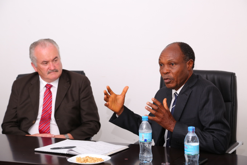 Bw. John. J. Kyaruzi na Bw. Peter Ireton wakibadilishana hati za makubaliano.