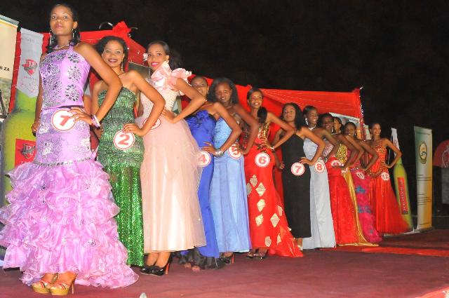 Wanyange walioshiriki shindano la Redd’s Miss Geita 2013 wakiwa katika picha ya pamoja jukwaani.
